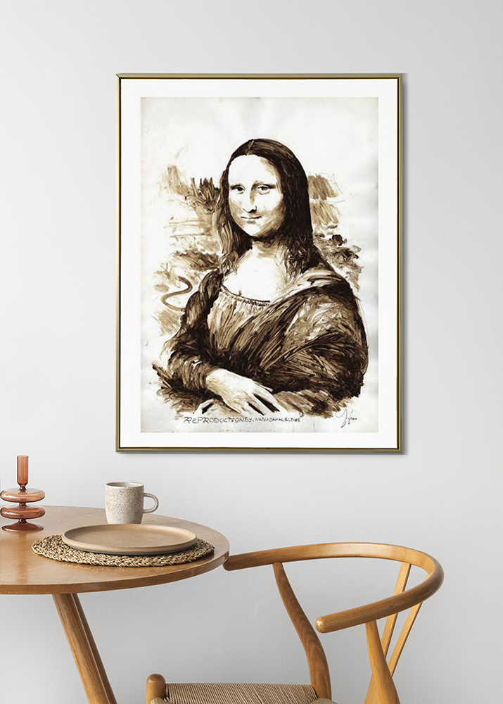 Coffee Liza, a reproduction of the famous mona liza,